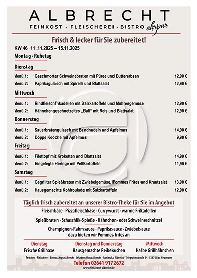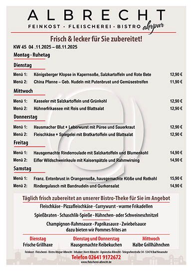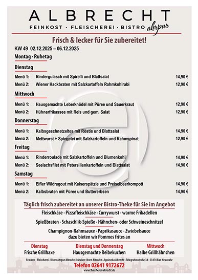 © 2025 Horst Albrecht · Fleischerei Albrecht · Telegrafenstraße 34 · 53474 Bad Neuenahr-Ahrweiler